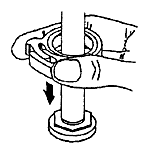 - 直径の大きい面を前面にしてシャフトにはめます。ナットのねじ切り部分に少量のロックタイトを塗布します。ピストンシールが手でまわらなく迄ナットを締め付けます。