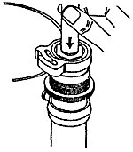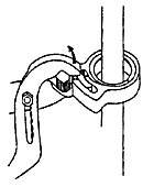 アウターピストンシャフトにアウターピストンアッセンブリを取り付け、ツールにホースクランプを取り付けます(この時ホースクランプの継ぎ目に若干のオイルを塗布してください)。そしてこのツールをピストン上に滑らせてはめてください。(図1)