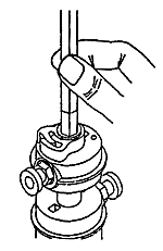 - シリンダーエンドキャップを持ち、その下部にある、ギザギザのあるナットを回して、シリンダーからプランジャーアッセンブリを抜き取ってください。